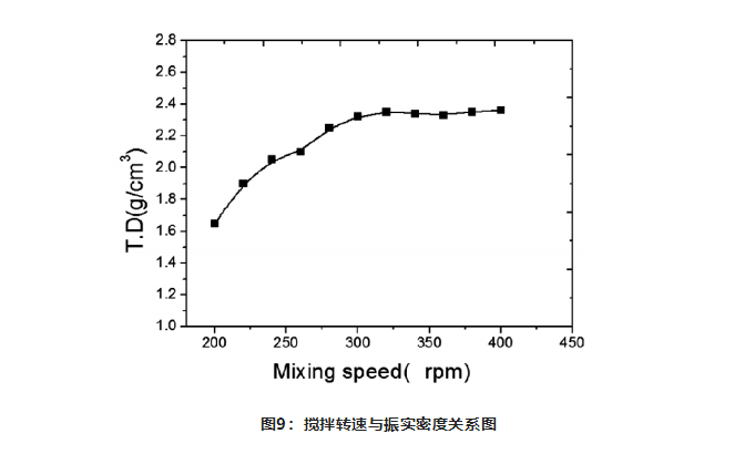 攪拌速度對晶體結晶過程影響較大,從而影響前驅體的振實密度。